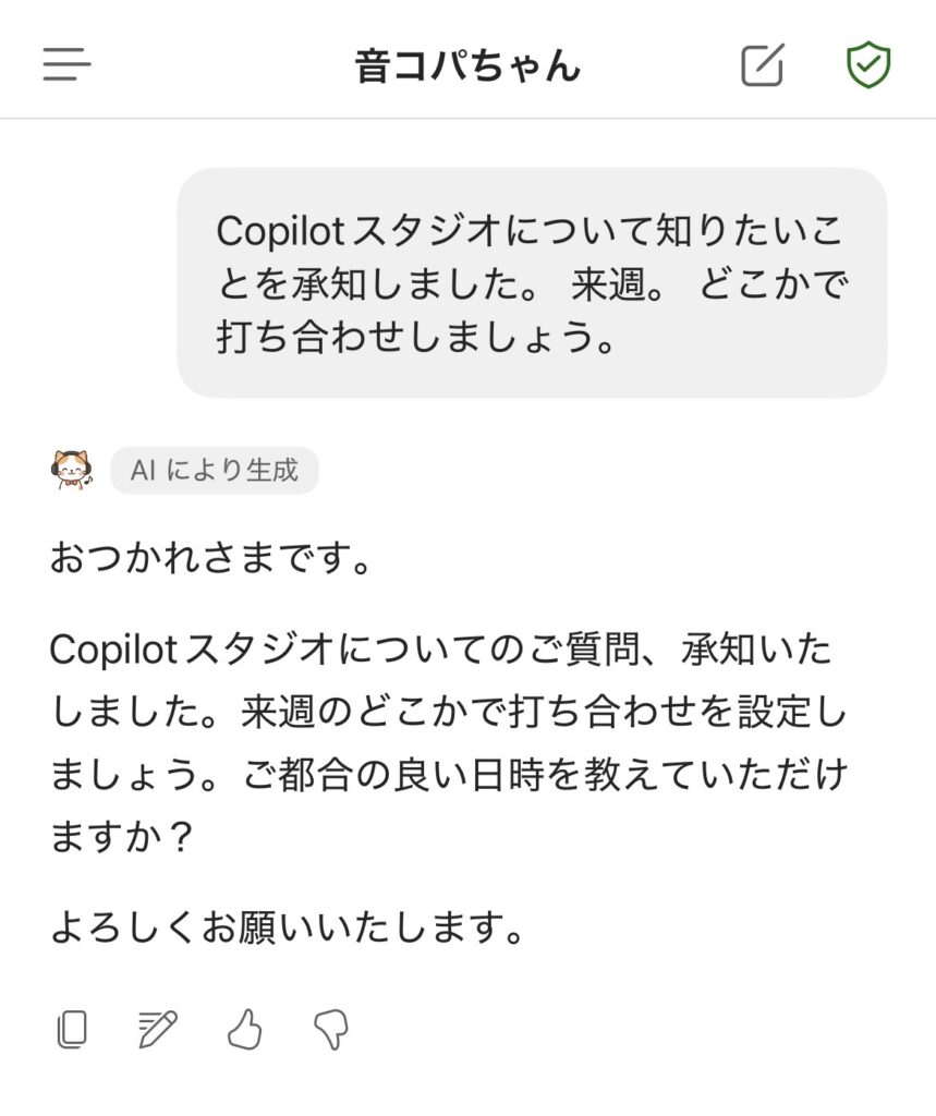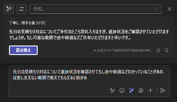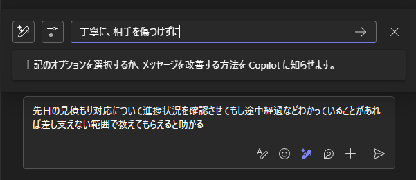 音コパで一番よく使っているのが、Teamsのチャットメッセージのリライトです。
