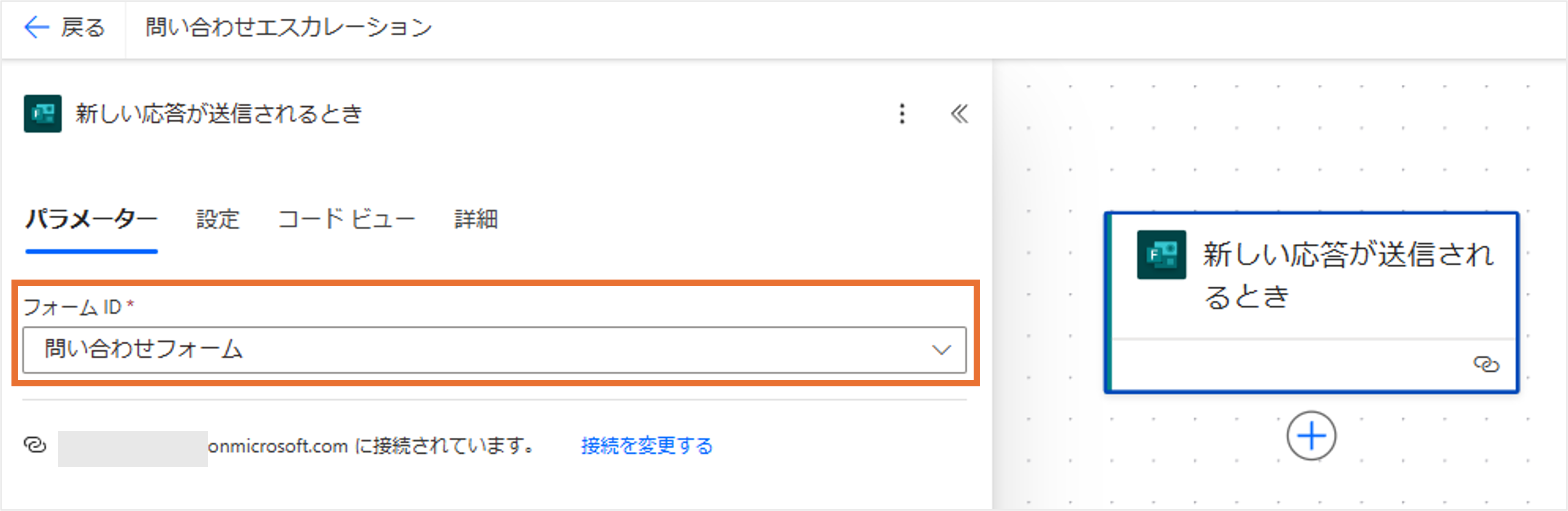 フォームIDは、前準備で作成したFormsフォームを指定してください。