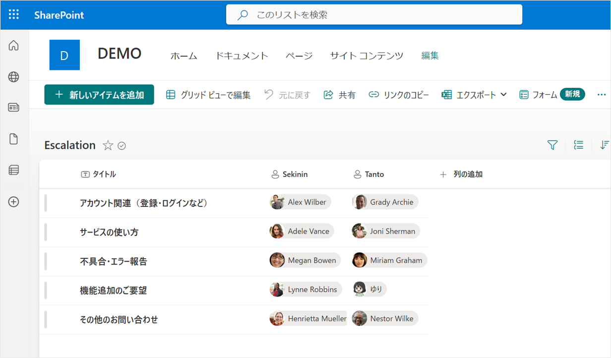 タイトル列の値は、Formsアンケートの「問い合わせカテゴリを選択してください。」と同じ内容になるようにしてください。